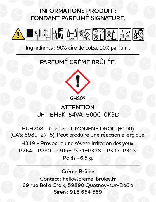 - Parfum crème brûlée 100% français : Créé à Grasse, évoque une couche caramélisée craquante et une douceur vanillée irrésistible.